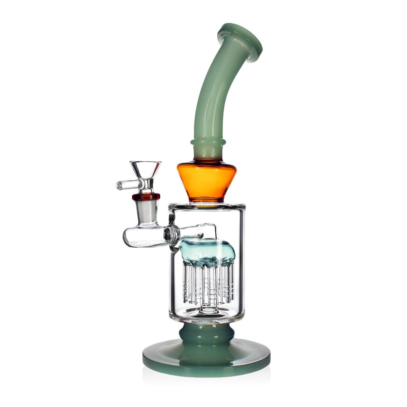 Phoenix Star Bend Lamp - это бонг высотой 28см с древовидным прекулером из 10 трубок выполненный в оригинальных цветовых решениях. Встроенный шлиф с чашей 14.4мм. Бонг имеет изогнутую к верху форму, что делает процесс курения удобнее.