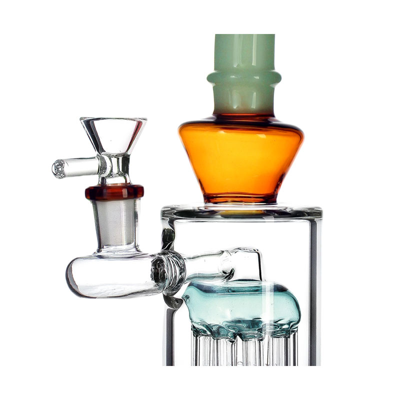 Phoenix Star Bend Lamp - это бонг высотой 28см с древовидным прекулером из 10 трубок выполненный в оригинальных цветовых решениях. Встроенный шлиф с чашей 14.4мм. Бонг имеет изогнутую к верху форму, что делает процесс курения удобнее.